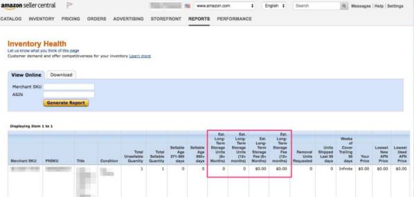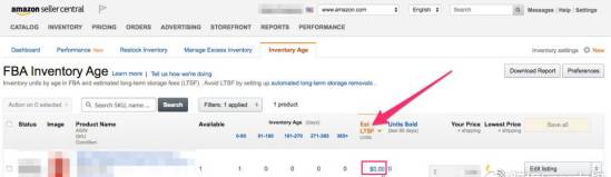 卖家可以看到预估的长期仓储费,以及库存时间。