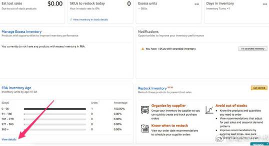 下拉页面直到“FBA Inventory Age”,点击“View Details”