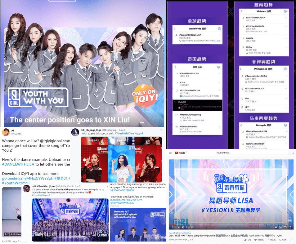 整合营销传播面向海外消费者传递品牌理念与价值观,是海外品牌营销中的重中之重。2020年7月,造新通过海外众星打CALL、CPOP推广者认证、红人翻跳等多种营销策略,成功将《青春有你2》推向全球。
