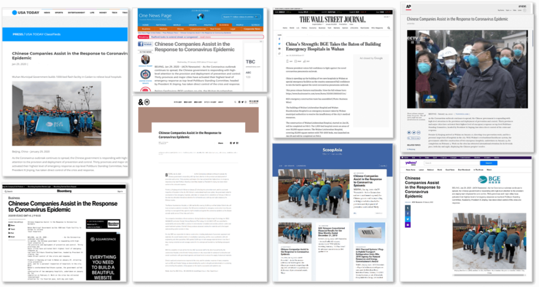 造新将海外PR作为整合营销策略的一部分,通过外部和内部公司沟通、声誉和危机管理、贸易展览等,使企业、品牌和产品声量最大化。2020年武汉新冠疫情爆发后,造新通过策划华尔街日报、美联社、朝日新闻等权威外媒,报道高能环境驰援火神山和雷神山医院建设的行动,为品牌赢得国际盛誉。