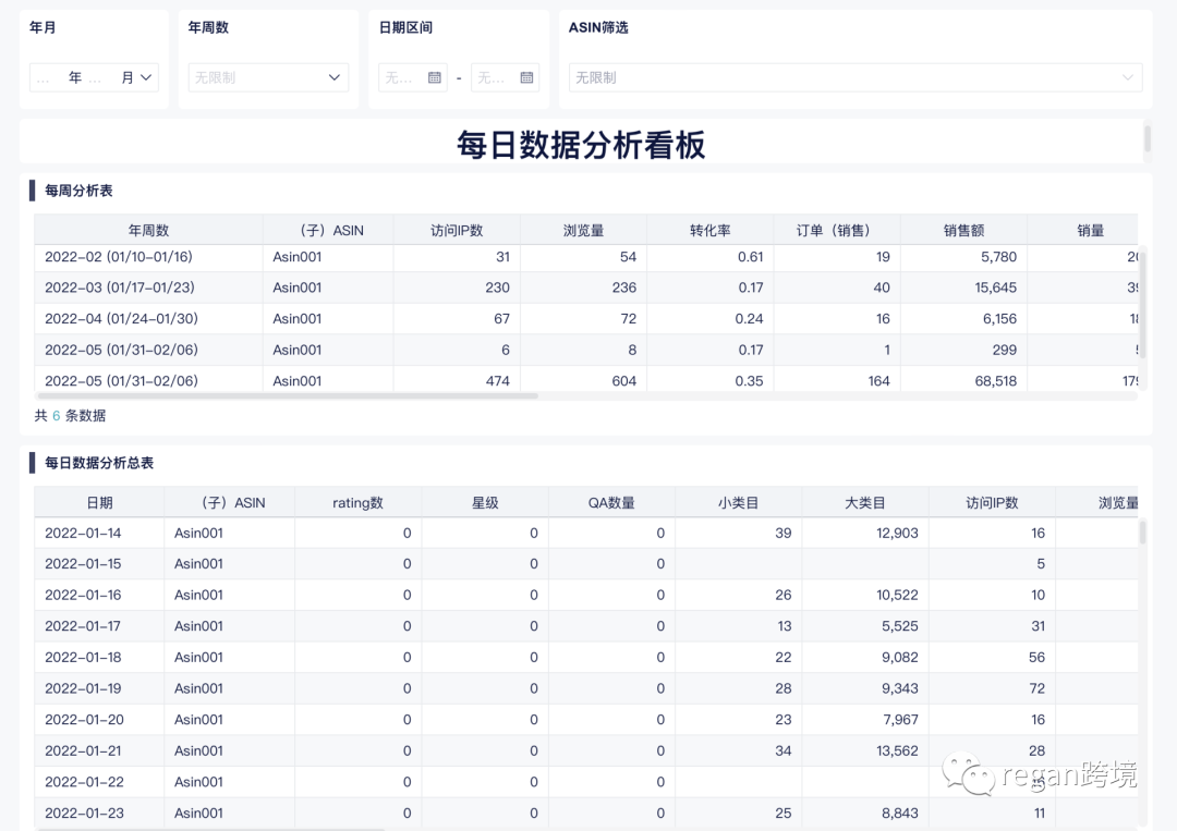 通过这张表格可以一目了然的看到我们店铺产品的各种细分数据,包括每日之间,每周之间,月度之间的数据对比,可以帮助运营有效的进行产品优化。