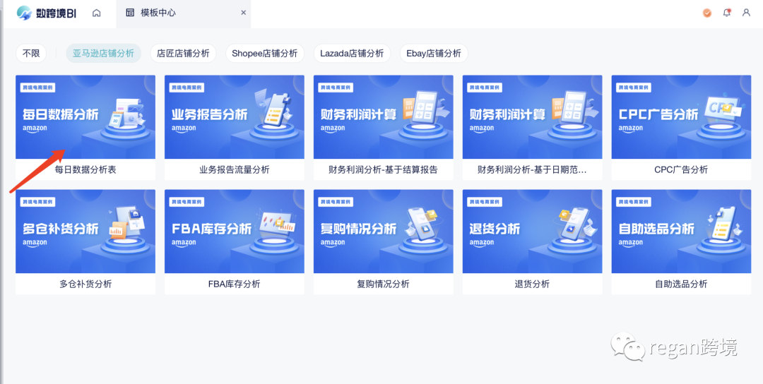 通过注册数跨境BI-模版中心-每日数据分析表。