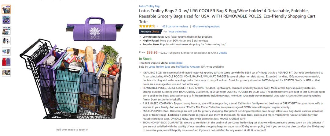 从需求方面来看,该产品5星以上的评价占比79%,说明这类产品是较容易获得用户的好评的,有创意的购物袋,在解决用户购物的问题时,还能保持一个较低的价格(当然利润也很可观)情况下,用户给好评的机会也会增加。