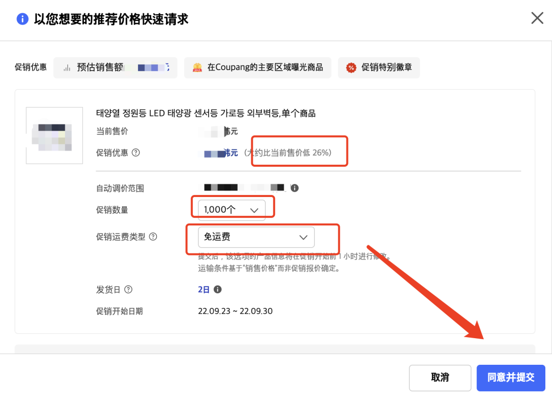 (1)平台会自动要求你给出促销优惠,比如下图所示优惠26%。那么这里就需要你自己注意计算成本和利润,是否参与促销有利润。