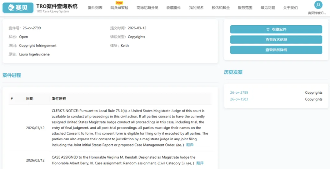 目前案件26-cv-2799处于立案阶段,暂无重大进展,而案件26-cv-1583被告名单已公开,被告跨境电商卖家需要尽快准备好TRO应对方案,卖家可以在赛贝TRO案件查询系统免费下载诉状和跟进案件最新进度!(公众号菜单及赛贝知识产权官网均有入口)