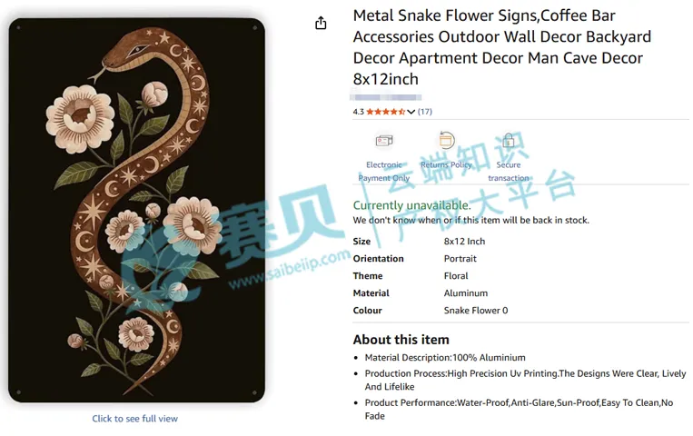 原告Laura Ingeleviciene其多幅作品已在美国版权局完成注册,赛贝提醒跨境卖家,未经授权不得擅自使用,以免引发侵权风险。