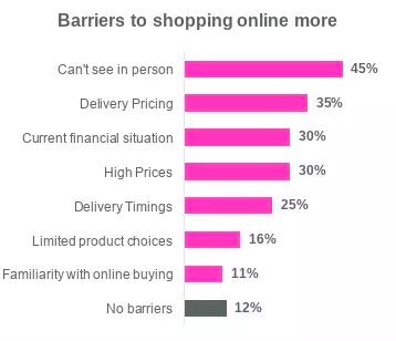 价格是决定美国人网购的主要因素,近57%的人表示,总体而言,较低的价格会让他们更有可能在网上购物。如果折扣更多,48%会更频繁地在线购物;如果交货时间更快,34%会更频繁购物;如果产品选择更多,26%会更频繁网购。