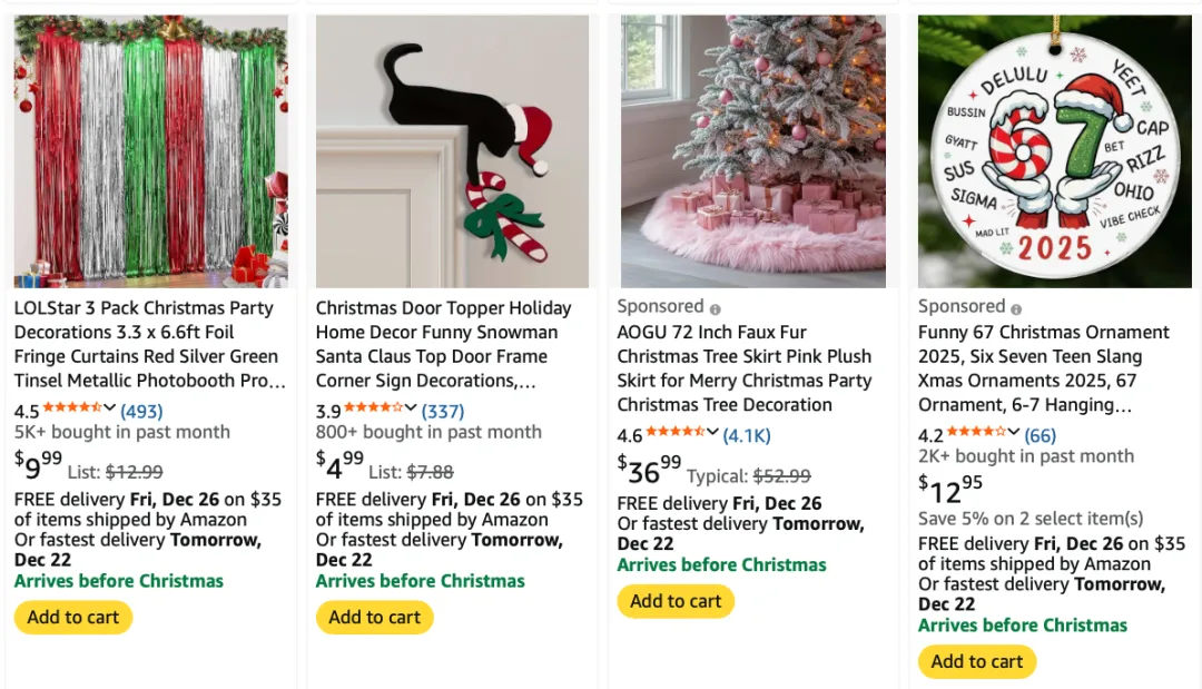 一旦页面出现 “Arrives after Christmas”,转化率往往会瞬间下降,广告效率明显恶化,礼品型需求直接流失。特别是在 12/20–12/24 这个窗口期,影响极其明显。