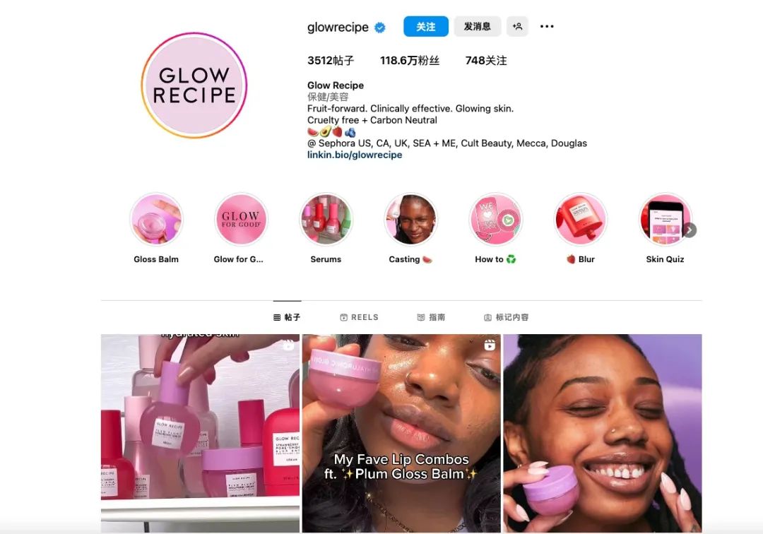 Glow Recipe是一个相对年轻的品牌(2017年才推出),但却已经开始了它的“明星之路”——该品牌现在在Instagram上拥有超过118.6w名粉丝。是护肤领域最热门的品牌之一,到2021年结束时销售额估计达1亿美元。