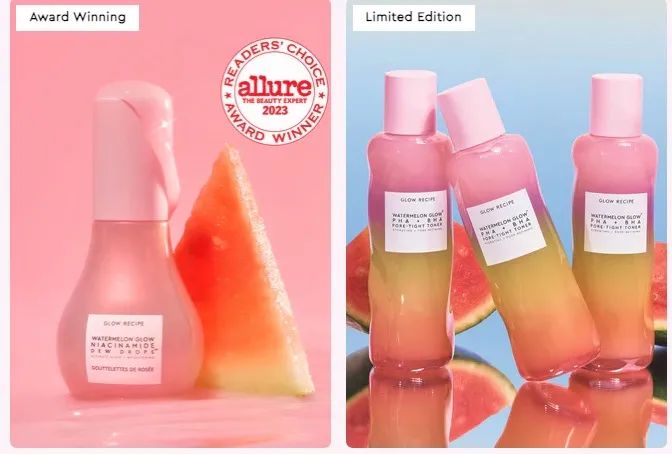 Glow Recipe通过注重细节来做到这一点:除了精心设计色彩鲜艳且与产品所含水果相匹配的包装外,该公司还测试了产品的质地在社交帖子中是否会吸引人。它还将产品设计成在各种光线下的样子,这样顾客就更有可能张贴他们在自己货架上的照片。