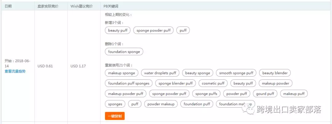 6月5日上架的美妆蛋也颇受欢迎,售价(1+2)美金。该产品刚上架就开始开PB活动,并且在2期对投放关键词进行了调整。
