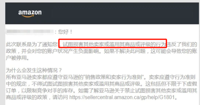 邮件中提及 “不限于添加恶意关键字或图像以影响竞争对手...”,看到这句话,卖家们恍然大悟,原来除了跟卖之外,还有这些隐藏的恶意行为同样会引发亚马逊对账户绩效的严格审查与严厉处罚。