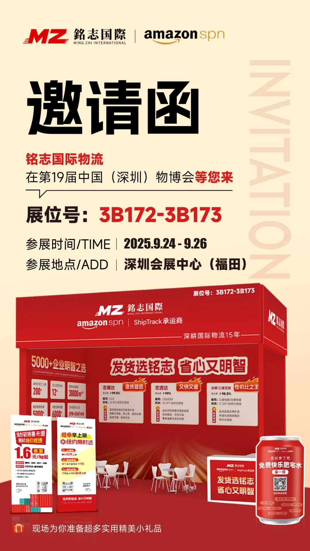 第19届中国(深圳)物博会将于9月24日-9月26日开展,铭志国际物流受邀参展,欢迎卖家朋友来跟铭志线下碰面聊一聊。具体信息如下: