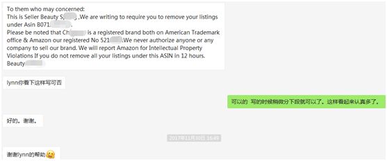 无独有偶,第二位卖家遇到了第二次的跟卖,因为有品牌保护,很快,又赶走了跟卖卖家,得到一片难得的“净土”。