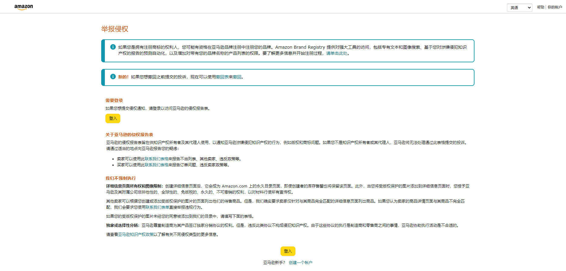 1.进入网站:https://www.amazon.com/report/infringement。