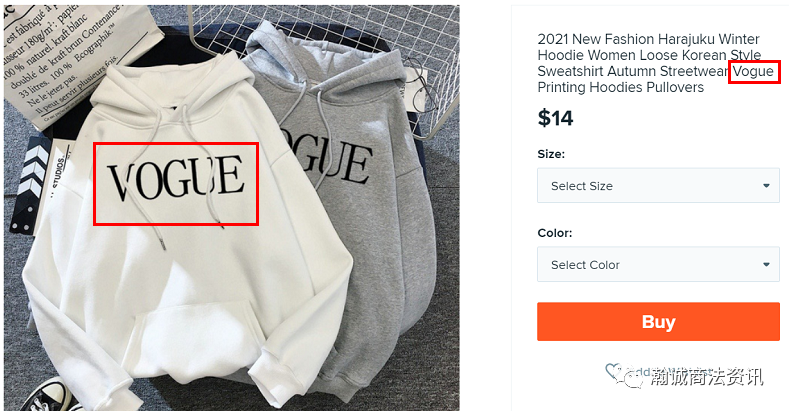 在其注册商标中,卖家朋友最常在产品上或产品描述中使用“VOGUE”一词,如下图所示: