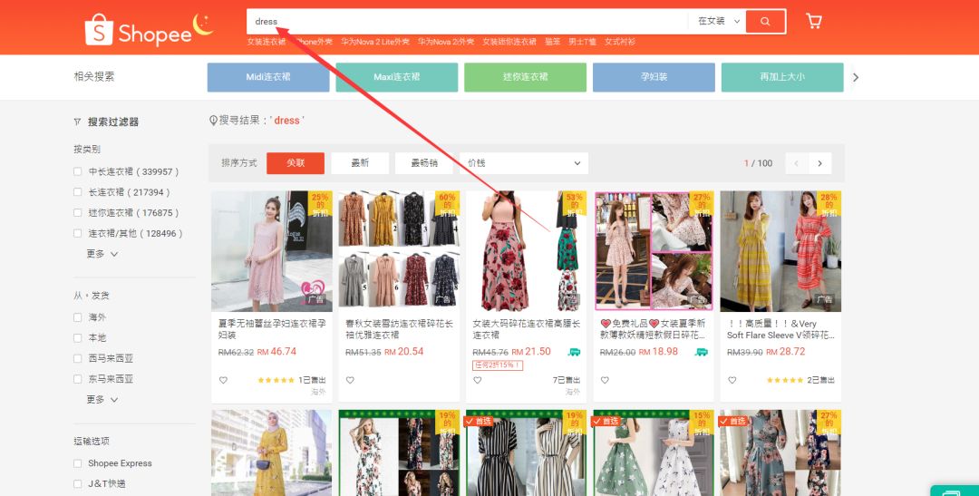 • 上新时可以先在Shopee或者其他电商平台的网站搜索当地的时下热搜词语,并将相关词语加在产品名称上;