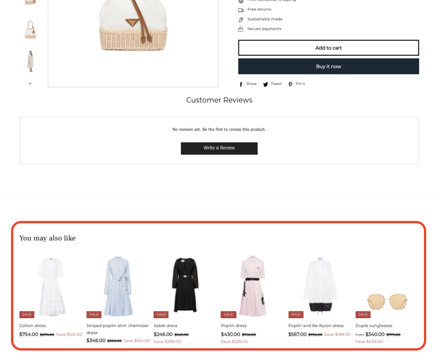 在独立站搭建中,商家往往会采用推荐位,也就是店铺中常见的“you may also like(你可能也喜欢)”,去推荐一些同类商品,促进转化。传统的推荐模块,商家会推测浏览该商品的消费者喜好,手动设置相关的商品或专辑,进行推荐。