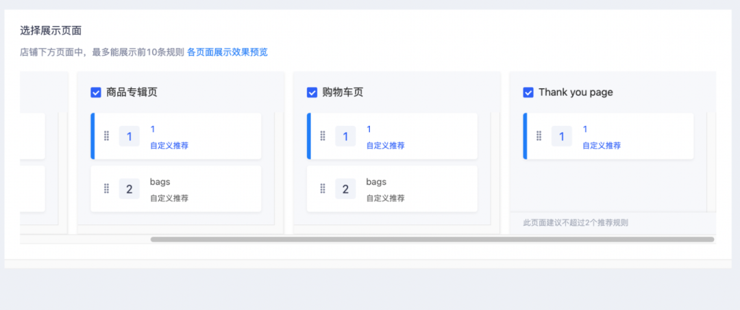 店匠的智能商品推荐功能目前支持在商品详情、商品专辑、购物车、订单完成页、加购后弹窗等多个页面中进行添加。不论消费者是在初步挑选商品,进行购买决策,亦或是已经购买完成,商品智能推荐能够360度全方位渗透消费者的购买旅程,最大化商品曝光。