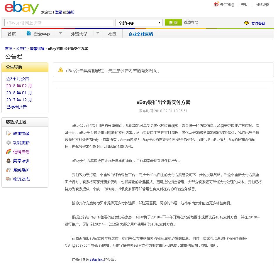 2月1日公告 eBay平台将会推出崭新的支付方案