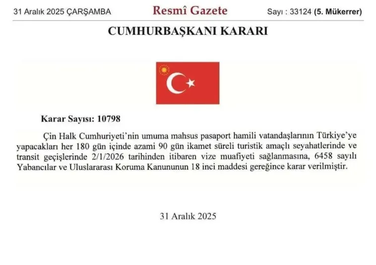 当地时间12月31日,土耳其《官方公报》发布总统令,宣布自2026年1月2日起,对持中国普通护照的公民实行免签入境政策。