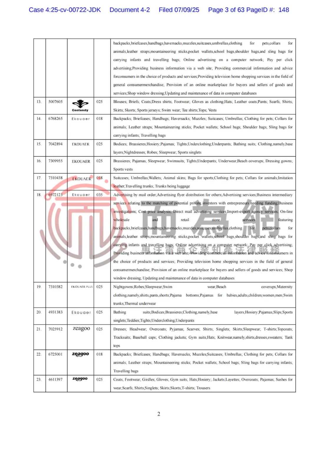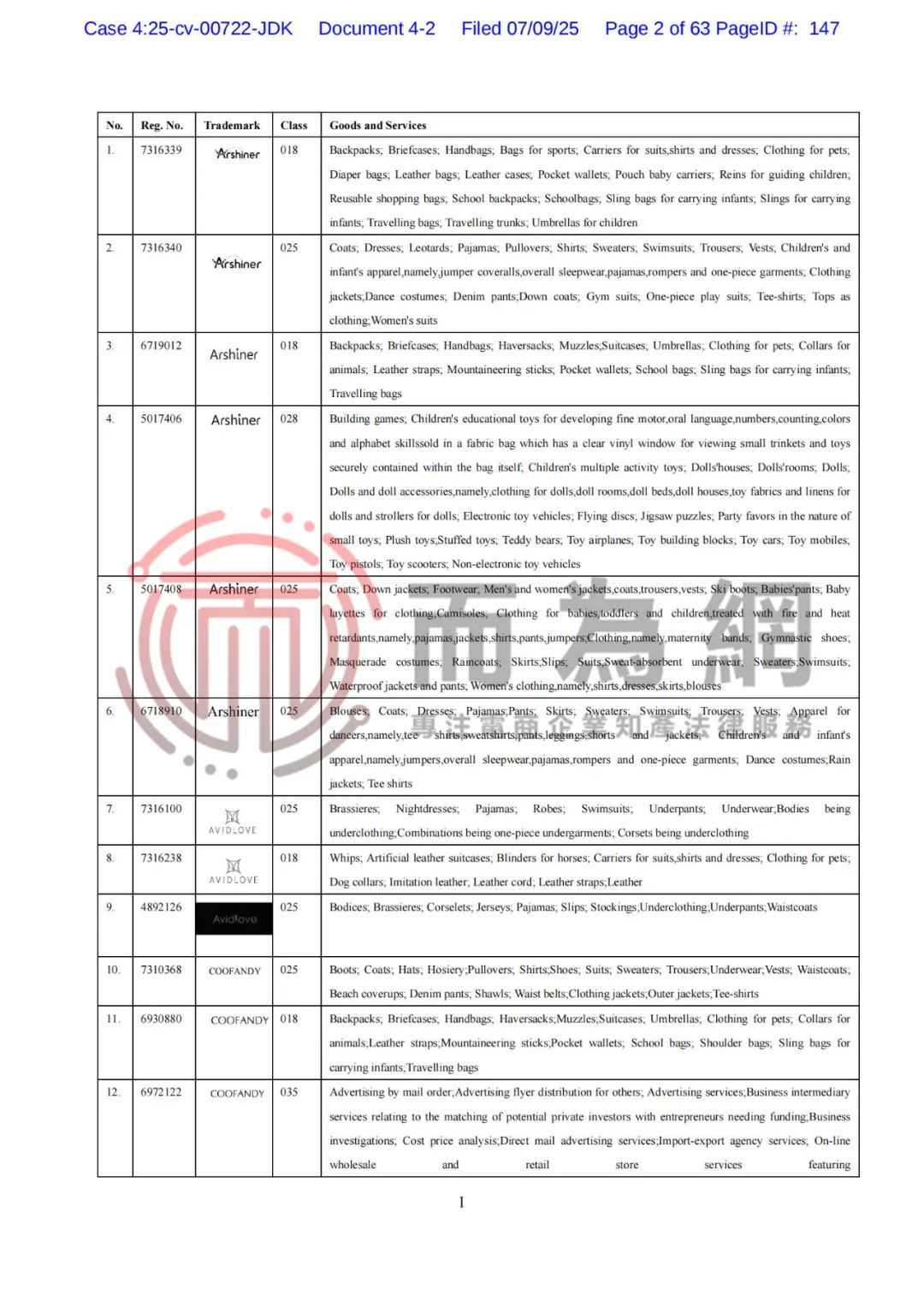 【侵权快讯】25-cv-00722 国人原告23个商标发案维权!匿名冻结101个shein店铺!