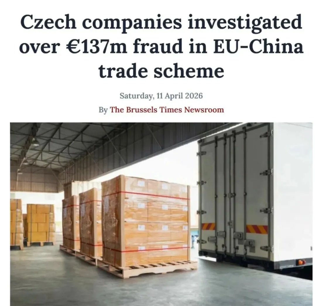 这些捷克企业还长期为中国出口商提供 “灰色清关” 服务,用低价吸引大量货物通过这条违规通道进入欧洲,最终造成欧盟关税损失2410 万欧元、未缴增值税超1.133 亿欧元,合计财政损失超 11 亿元人民币。