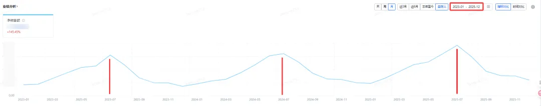 二是类目流量工具,观察类目销量的变化趋势以及核心关键词的搜索量是否出现断崖式下跌;