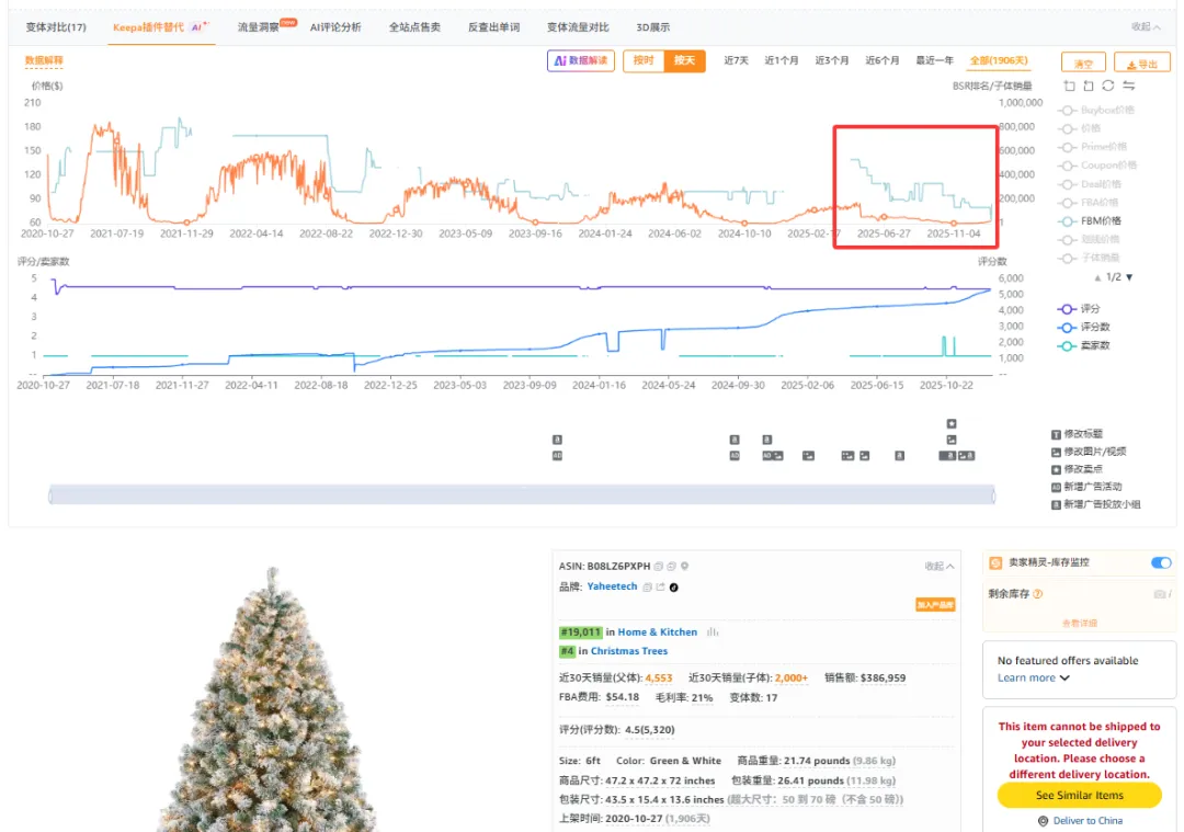 向上面举例的圣诞品类(如圣诞灯饰、人造圣诞树、圣诞挂件),这类产品的淡旺季特征极为鲜明:Q1Q2销量仅占全年5%以下,甚至可以说就没销量,Q4销量占比超95%,是全年绝对旺季。这种就属于强季节性产品,旺季过后需求几乎归零,硬撑只会亏损;