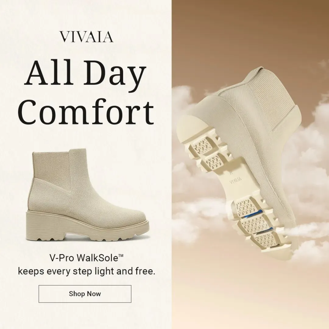 VIVAIA在11月初发布的黑五促销宣传视频也很有意思,通过抛鞋子生动有趣的方式,在15秒内展示了近30款鞋子,很直观地表现出品牌极其丰富的设计,可看性很强。