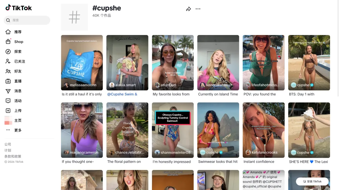 TikTok 上 #cupshe 话题内容