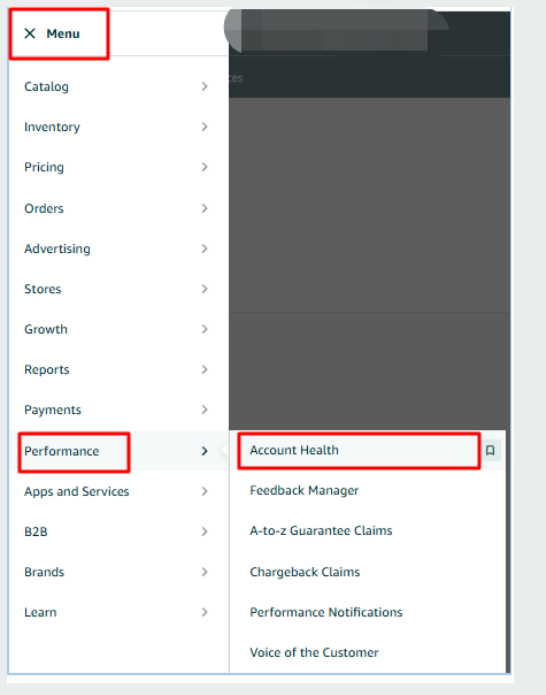登录Seller Central → 顶部导航栏点击 "Performance"(账户表现)