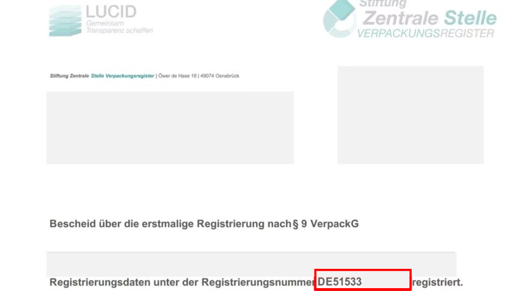 在合规门户中填写您的德国包装法(LUCID)号码: