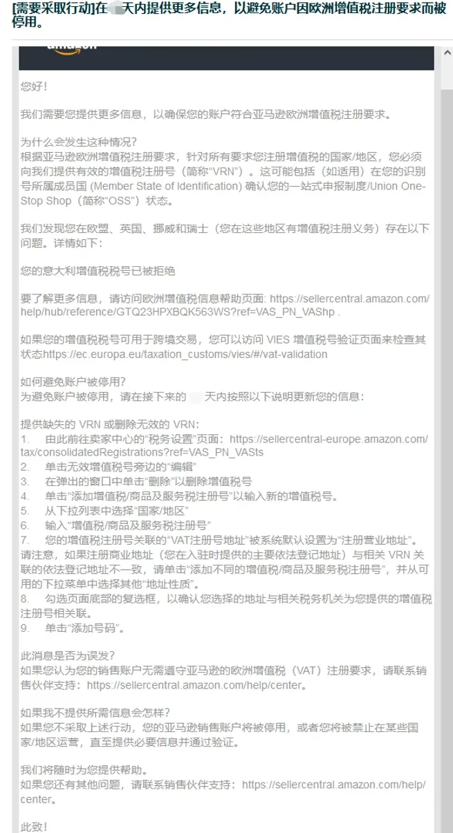 根据亚马逊的欧洲增值税强制措施,如果卖家在欧盟国家触发增值税义务,需要向亚马逊提供有效的增值税税号,确保登记信息与税务机关数据库一致。