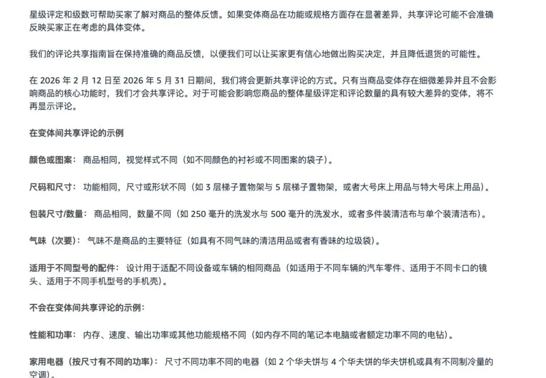 这种情况会导致买家看的评论和实际想买的那个具体变体不匹配,容易踩坑。