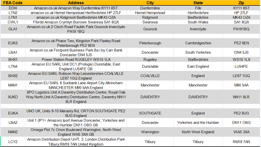 欧美加FBA仓库地址史上最全总结!(卖家必备!)
