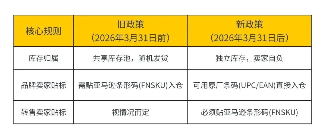 近日,亚马逊官方发布了一则公告,从2026年3月1日起,将正式终止长期沿用的 “共享库存” 功能,并更新制造商条形码的使用资格标准。