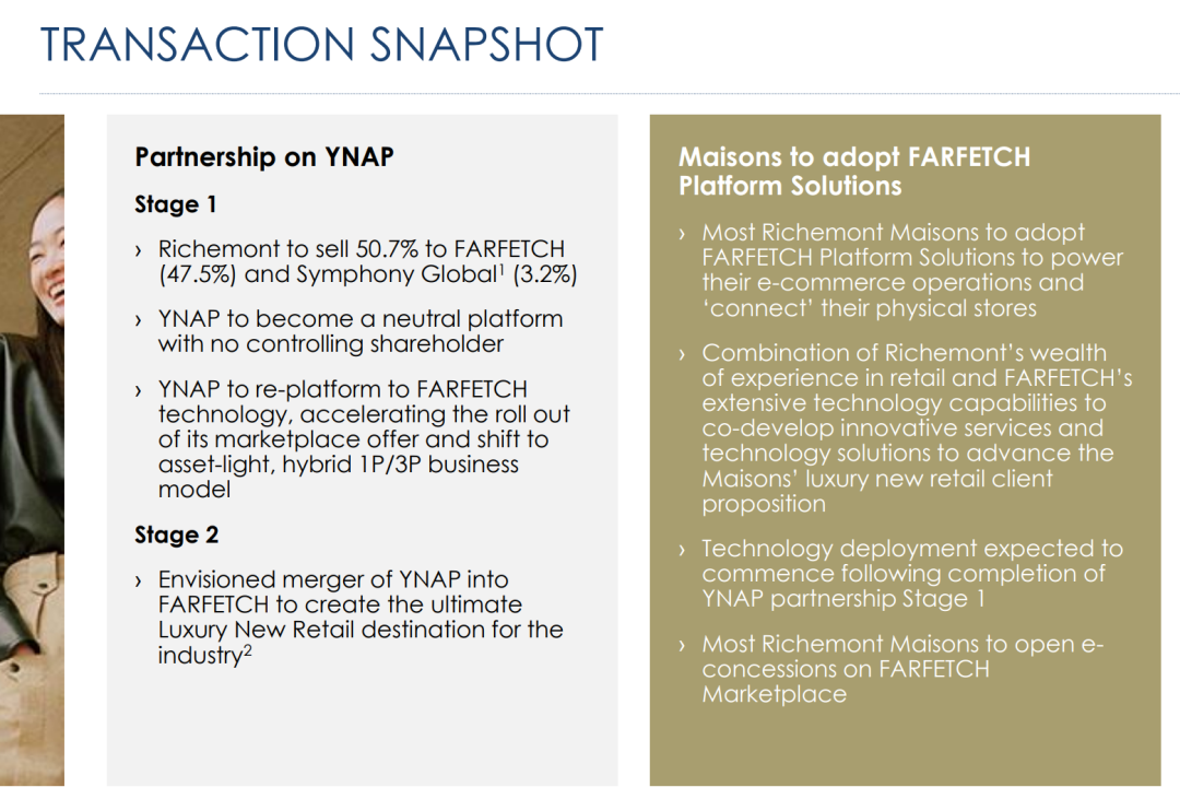 首先,历峰集团向着将 YNAP打造为无控股股东的、中立的全行业平台迈出了重要一步;
