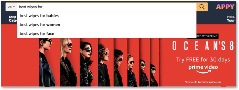 转到亚马逊的搜索框并快速输入买家在搜索你产品时可能会输入的内容,之后亚马逊的自动填充功能会为你提供潜在的关键词组合。
