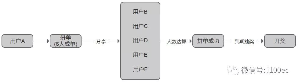 上图可见:拼单过程是以低价为诱惑力,过程中用户A成为了一个流量源头,由他带动了另外5位用户的新增或者活跃。