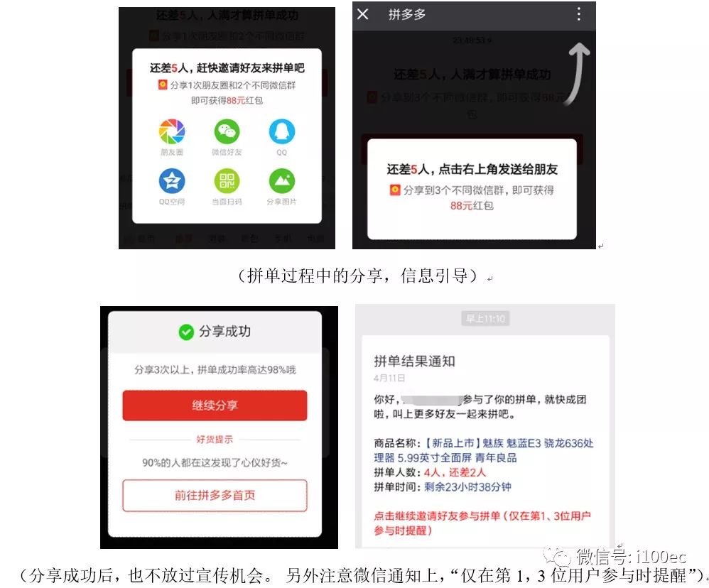 拼多多在拼单的一整个过程中,都加入了扩散引导的信息诱导。 不遗余力地抓住任何一个可以抓住的机会,去拉去新用户或者活跃老用户。