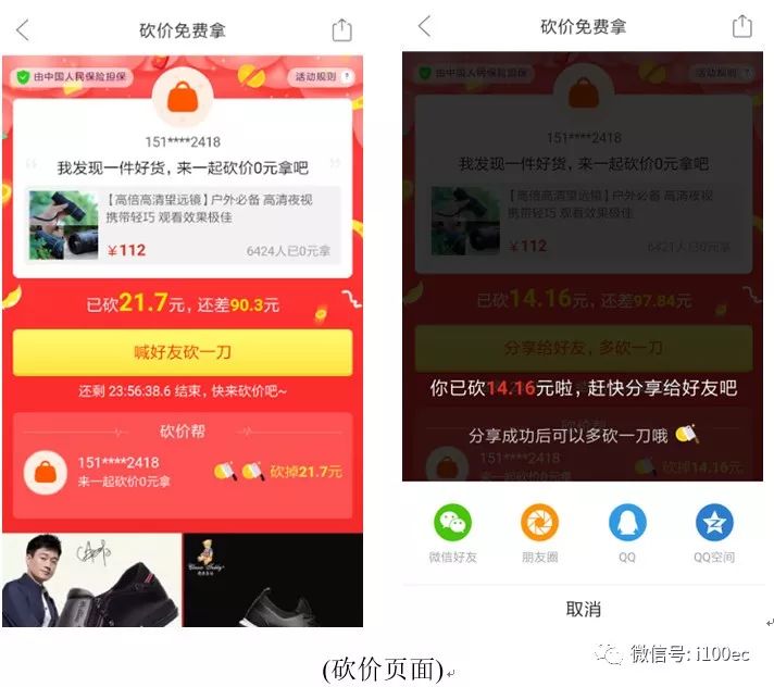 砍价数目:砍价本质是社交类的集体压低产品价格。具备病毒式传播特征。