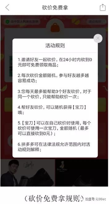 砍价的逻辑是:拼多多放出一些砍价产品,用户对于商品感兴趣,首先自己砍一刀,将商品的价格降低一些。然后,分享至微信、微信朋友圈、qq等,可以邀请好友一起砍价,24小时砍至0元,就可以免费领取商品。