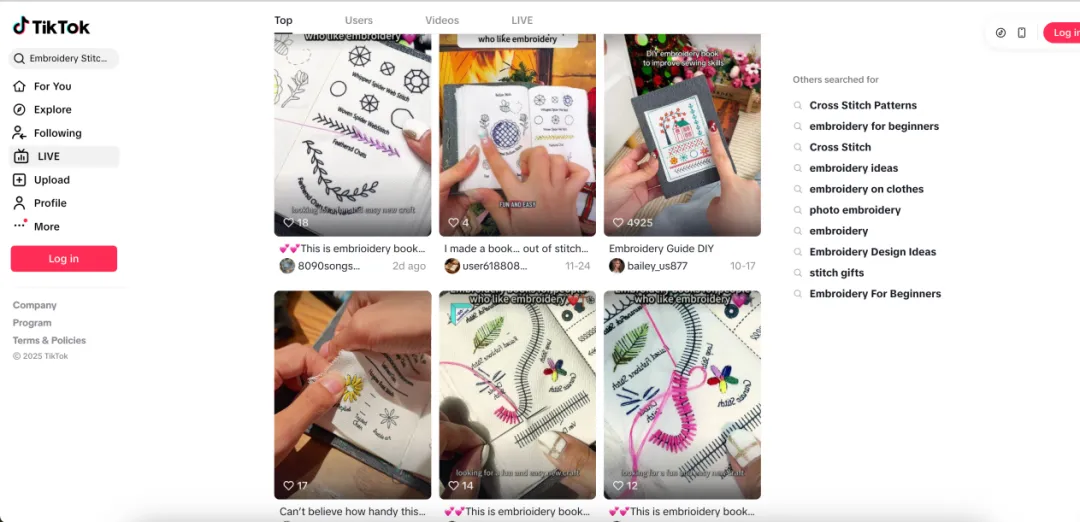 时间线完美对齐。在亚马逊ABA排名暴涨的11月同期,TikTok上突然涌现出大量关于Embroidery Stitch Book Kit的短视频。这些视频极具视觉冲击力展示者轻松地在一本布书上完成各种精美的刺绣针法,过程解压、成品惊艳。这种内容在TikTok算法的加持下具有极强的传播力和种草能力,瞬间激发了海量用户的冲动消费欲望。