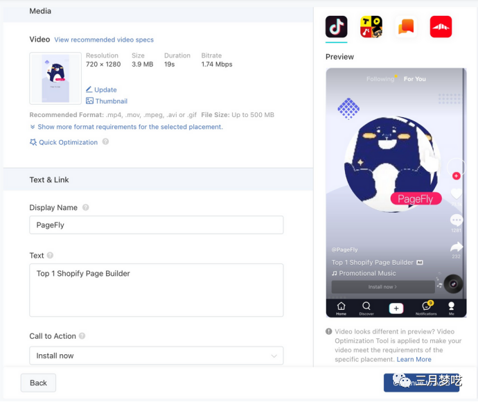 一、什么是TikTok? 你们中的大多数人一定听说过 TikTok 或在互联网上的某个地方观看过 TikTok 视频。TikTok 是一个社交网络,旨在分享简短有趣的视频。出于这个原因,TikTok 视频经常在 Facebook、Instagram 或 Reddit 等其他社交网络上分享。这种分享大大提高了 TikTok 的知名度,尤其是在青少年中。如果你想接触更年轻的人群,TikTok 是一个特别有用的工具,62% 的受众属于10 到 29 岁的年龄段。根据这些人口统计数据,你可以定制视频以匹配喜欢消费的内容,并利用你对算法的理解来制造病毒式的传播。 二、商业版 TikTok 2020 年 6 月,TikTok 推出了TikTok for Business工具,该平台包含提示、注释以及与 TikTok 的其他平台的链接。该工具还提供有关市场研究和分析的宝贵数据,从而帮助商家了解市场并以最佳方式使用 TikTok 进行广告活动。 设置 TikTok 企业账户很容易。首先从 Apple App Store 或 Google Play 商店下载 TikTok 应用程序。然后注册一个 TikTok 账户并按照以下步骤操作: ①前往您的个人资料页面。 ②点击右上角的汉堡图标,然后选择设置和隐私。 ③在账户下,点击管理账户。 ④点击账户控制下的切换到企业账户。 ⑤选择最能描述您账户的类别,例如服装和配饰、电子产品、宠物等。 ⑥然后完成您的个人资料。 三、Shopify 与 TikTok 的合作 2020 年 10 月下旬,Shopify 宣布与 TikTok For Business 建立合作伙伴关系,期间,TikTok 频道在 Shopify 应用商店上发布。此应用是 Shopify 商家可用于在 TikTok 上发布内容的主要工具。通过 TikTok 渠道,商家可以在其 Shopify 商店中安装 TikTok Pixel 并监控其 TikTok 广告的表现。为了让用户几乎可以毫不费力地在 TikTok 上创建内容,设计师们加入了一些创意工具,例如短视频模板和可以创建令人印象深刻的 TikTok 剪辑的过渡。不仅如此,为了吸引更多的商家和营销人员,TikTok 还准备在投资渠道之前给予商家价值 300 美元的信用额度,用于测试 TikTok 的广告活动。 四、在你的 Shopify 商店中安装 TikTok 频道 要在你的 Shopify 商店中安装TikTok 频道,你可以在 Shopify 应用商店中找到TikTok 应用。 当你在 TikTok 应用页面上时,单击“添加应用”以在你的 Shopify 商店中安装 TikTok 频道。 安装完成后,TikTok 频道将出现在 Shopify 后台管理面板的左侧栏中。你应该能够通过此面板将你的TikTok For Business账户连接到你的 Shopify 商店。 在下一页上,我已经登录了我的账户,所以我只需单击l链接。你可以使用自己的账户或使用“切换用户”更改用户 成功连接到你的商店后,将出现一个 TikTok Business Dashboard。在这里,你可以控制 TikTok 商业账户并在你的商店中完全安装 TikTok 频道。 五、如何在 TikTok 上推广你的 Shopify 商店 最后,在你的商店拥有 TikTok 频道后,我们可以开始创建 TikTok 内容来推广你的业务。TikTok 上的大部分内容都是带有效果和音乐的短视频,如果你不知道如何制作这样的视频,你可以在 Tik Tok Business Dashboard 上找到它的工具。 要准备你的第一个 TikTok 内容,请访问https://ads.tiktok.com/并使用企业账户登录。之后,你可以检查主菜单,资产 > 创意并在此页面上制作 TikTok 视频。请单击“创建”按钮打开“视频制作器”面板。 这是视频制作面板,它显示了3个选项来帮助你制作完整的广告视频。 视频模板:为广告创建幻灯片视频。该视频将基于可编辑和修改的模板。 智能视频:将产品图片上传到此智能视频功能,它将生成带有背景音乐的视频。有许多特效和音乐可供选择,你无需花时间学习新的视频编辑工具或找不到受版权保护的歌曲。 智能视频配乐:如果你的视频没有配乐,请不要担心。让 TikTok 的智能视频配乐为你找到一个。智能技术将为你的无声视频生成背景音乐,你只需将原始视频上传到此工具即可。 当你的视频内容准备就绪时,是时候进行下一步了,即设置广告系列。在 TikTok Ads Manager 的 Dashboard 页面,请点击中间部分的 Create an Ad 按钮。 下一页将允许你设置你的广告系列。首先,你需要选择广告目标并对设置进行一些更改。 在广告目标设置与其他平台的广告设置并没有什么不同,包括认知度、考虑度和转化率。你应该关注此页面的部分是 A/B 测试功能: 此拆分测试功能可让你在Targeting和Creative 2 个变量之间进行选择。定位可以帮助你使用相同的内容和着陆页同时将广告定位到两个不同的目标市场。否则,Creative 可以让你在同一受众上测试两个广告内容。无论你的广告系列采用何种策略,此 A/B 测试功能对于优化你的广告都非常有用。 下一步将要求你使用出价和定位。此步骤中的大部分设置与其他广告平台类似。不过 TikTok 主要是一个移动应用程序,因此会有一些与移动设备相关的附加选项。你还可以从该面板中选择 TikTok 像素以及如何跟踪你的广告。 完成广告的一些设置后,你只需要推送你为本次活动准备的广告内容。即使你还没有任何视频,也可以直接在此页面上创建视频内容。有两种类型的广告供你选择,单视频和单图像。但由于 TikTok 是一个共享视频网络,因此只有单视频广告可以在 TikTok 上使用。 就像Assets/Creative页面中的视频制作功能一样,渲染广告视频很容易,或者你可以使用你之前从库中创建的视频。 由于此广告系列中启用了 A/B 测试功能,因此你必须为其制作 2 个广告。完成广告 A 后,你可以对广告 B 重复这些步骤,唯一需要更改的是视频的内容。 完