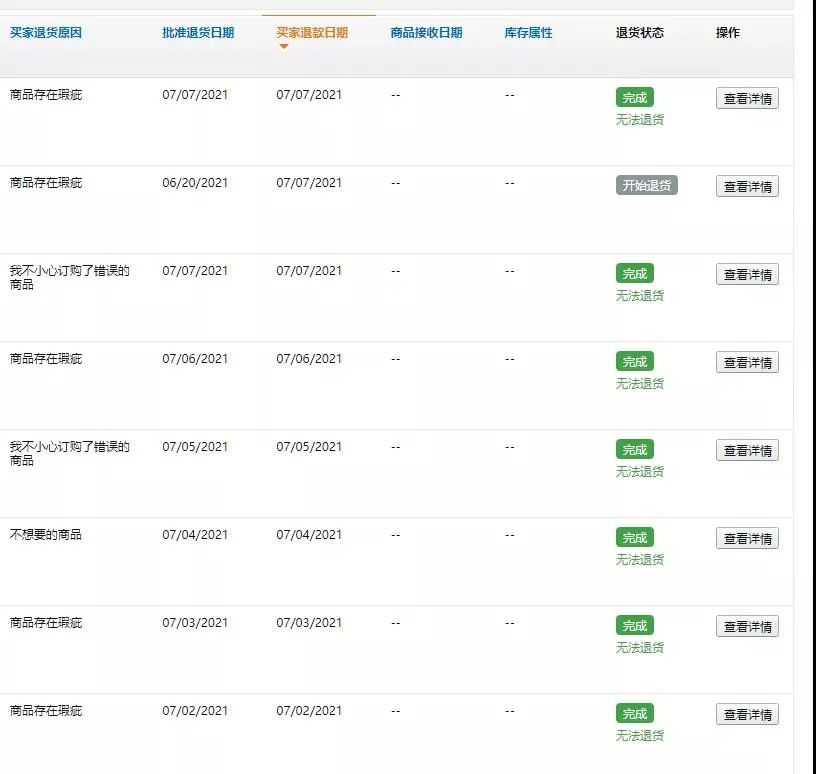 亚马逊修改退款政策带来的漏洞,加上有人恶意利用和6月末的这波退货潮,三重效应叠加造成了7月以来大批卖家出现不退货退款的订单。各位卖家赶紧看看自己有没有这样的订单,有的话赶紧开case处理。
