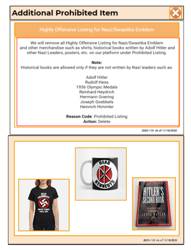 CB 卖家不能卖任何跟纳粹相关的产品或是由纳粹领导写的历史书籍