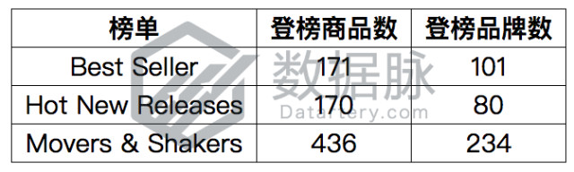 榜单的登榜商品及品牌数量情况如下表所示: