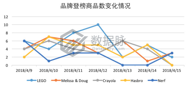 品牌Play-Doh的橡皮泥套装同样高开低走,以平均排名5.43位列综合排名第三;