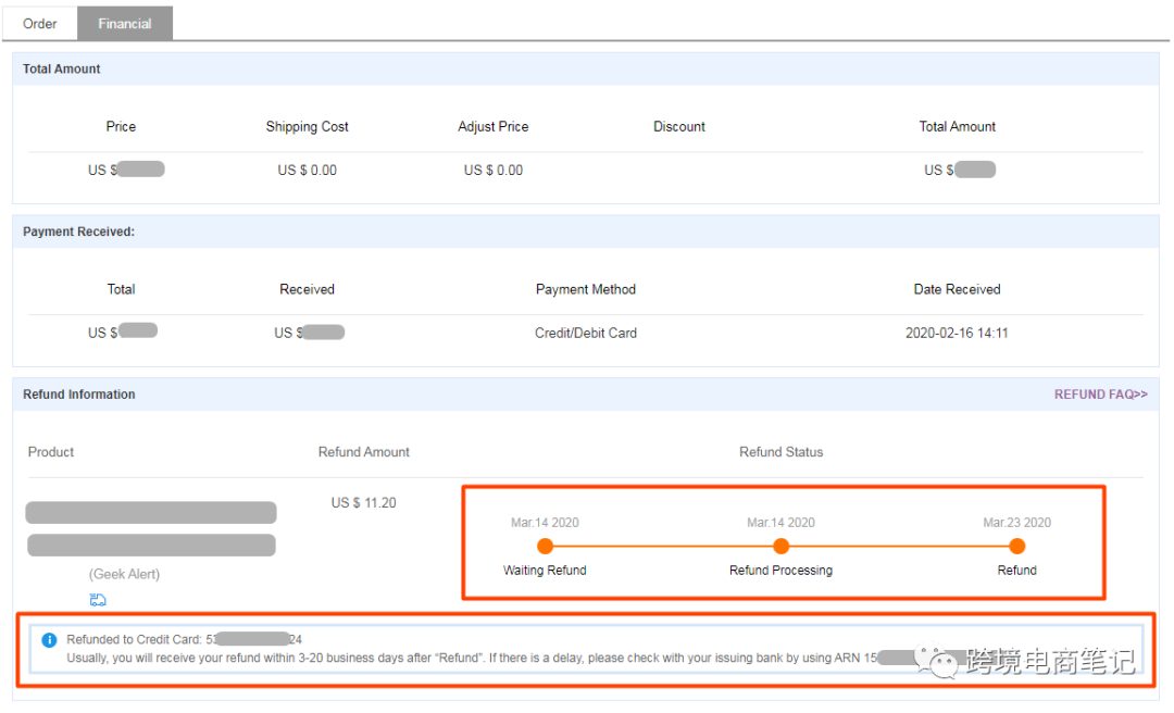 Please wait 3-20 business days to check the bank statement. And if, after carefully checking the bank statement or bill, you still have not received the refund after 20 business days, please do not hesitate to contact our customer service team.